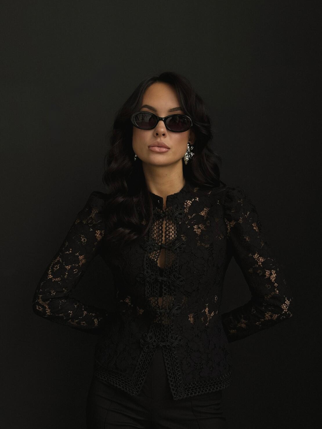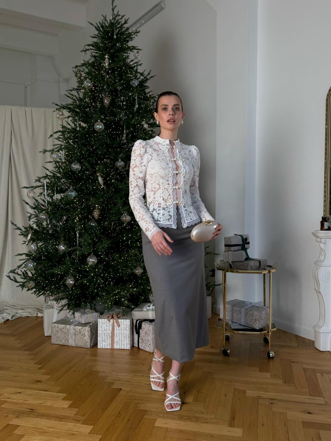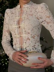 Изысканный жакет-блуза из кружева с декоративными петлями и кантом. Уникальная модель для особых случаев.