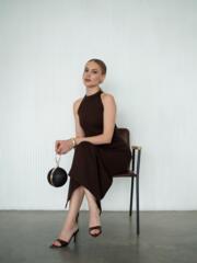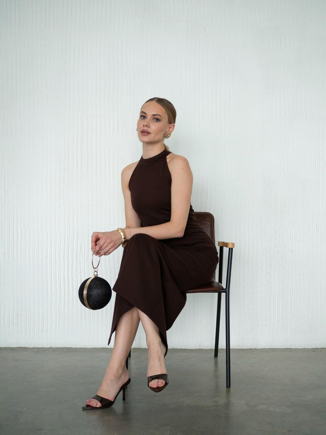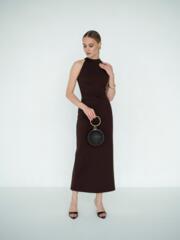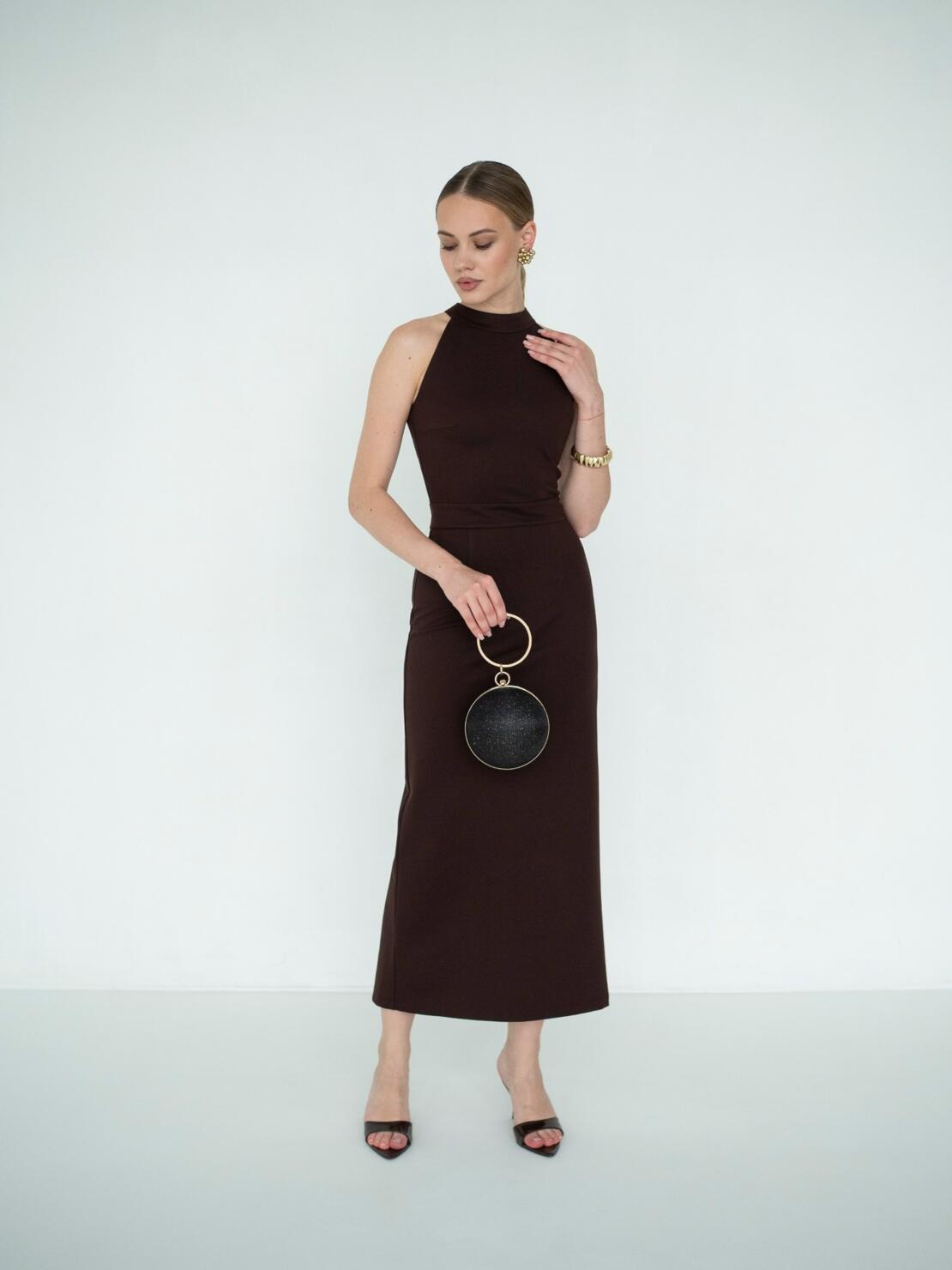 Изысканное платье футляр со стойкой в шоколадном оттенке. Выполнено из компрессионного трикотажа, идеально садится по фигуре и подчеркивает ее достоинства. Лаконичное и минималистичное — для вашего особенного выхода.