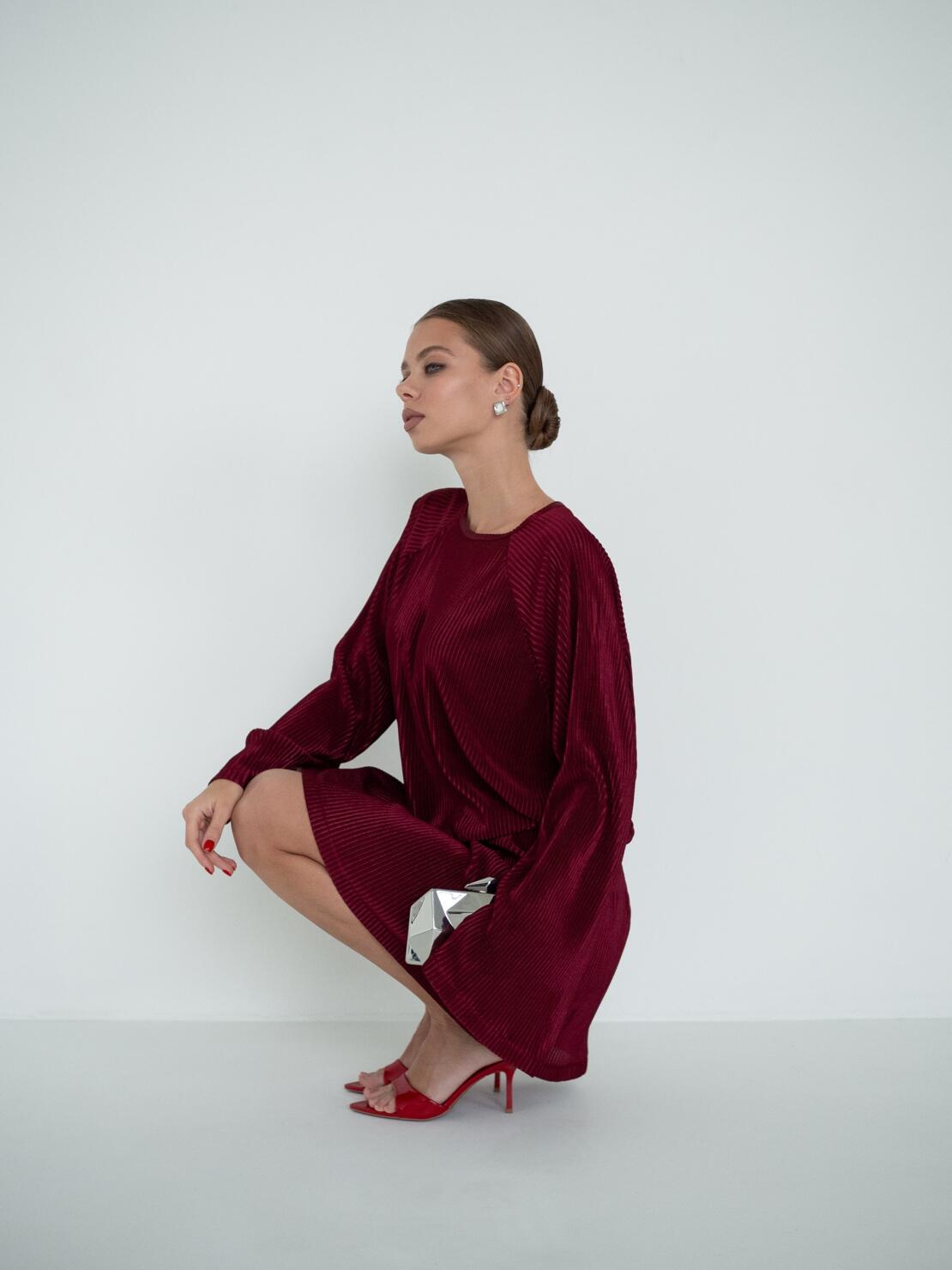 Коктейльное платье «Полечка» из гофрированной ткани, которое вы легко стилизуете и для семейного праздника, и для более неформальных мероприятий.