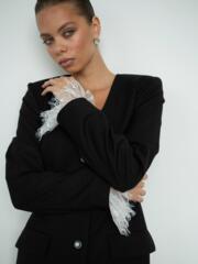 Акцент на талию, четкие линии и нежное белое кружево, которое с легкостью вы можете снять для создания классического образа. Строгая элегантность с утонченной романтикой.