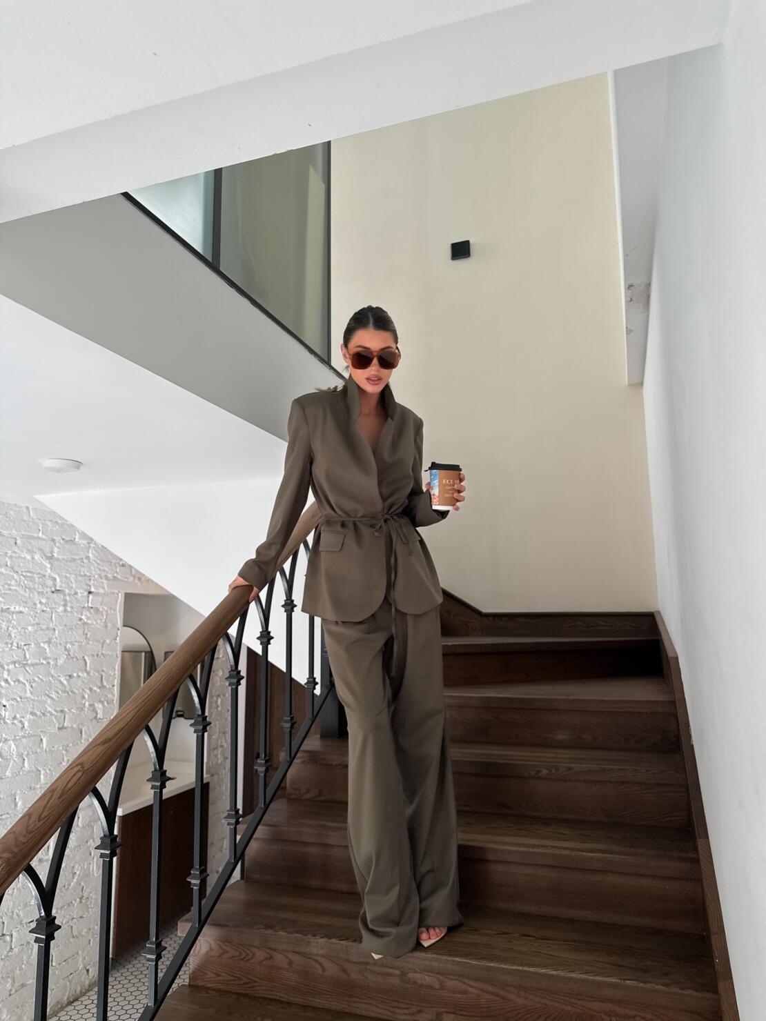 Представляем вашему вниманию идеальную пару для самого стильного сезона — брючный костюм в насыщенном цвете «Хакки»