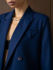 Подчеркнуто объемный жакет со спущенной линией плеча и тонким подплечником. Благодаря воротнику со строгими лацканами, шлицам и нагрудному кармашку он напоминает мужской, но станет отличной основой для хрупких женственных образов.