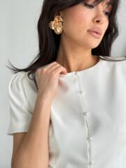 Изысканные жемчужные пуговицы — каждая пуговица подобрана в тон ткани и пришита вручную.